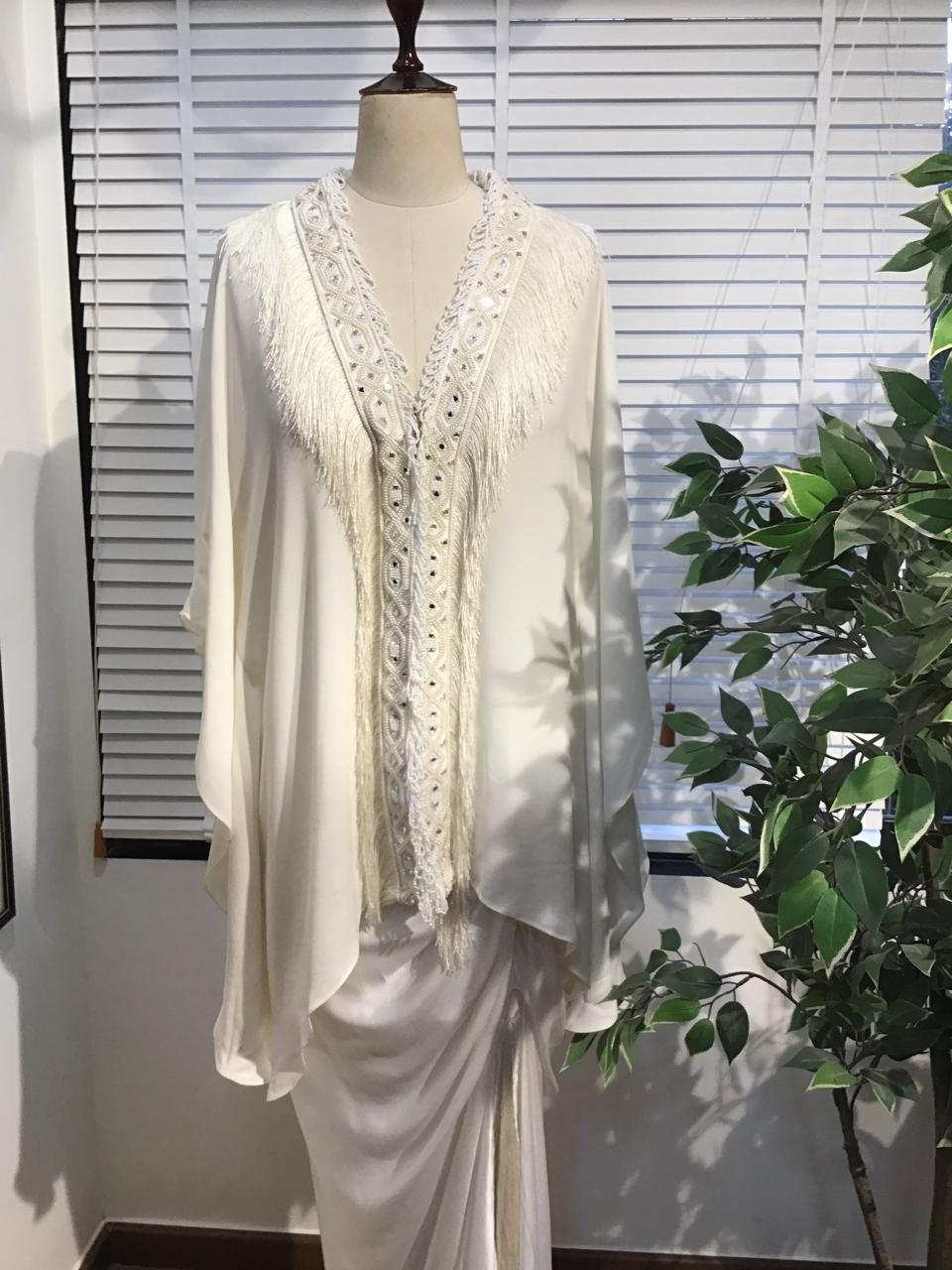 IVORY FRINGE EMBROIDERED KAFTANSET .