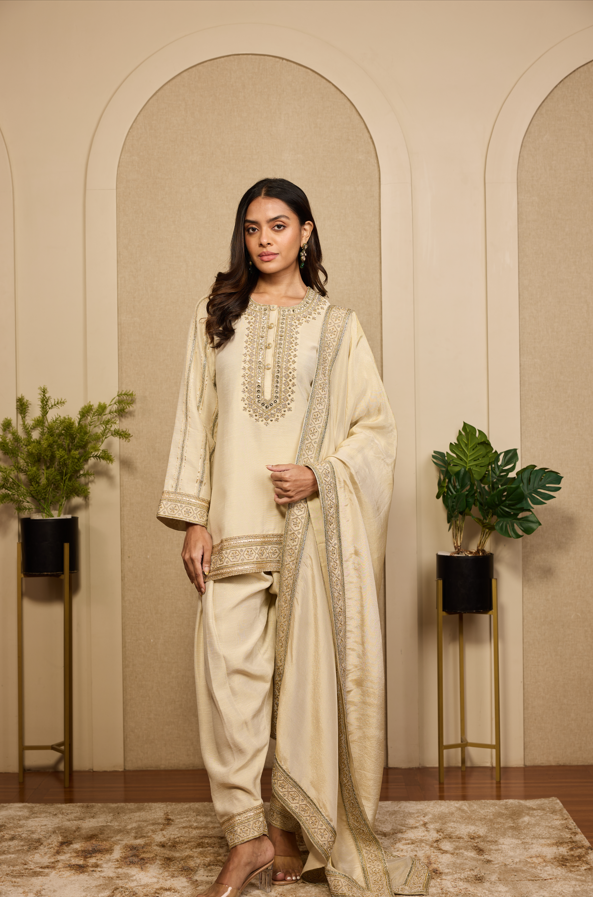 GOLD EMBROIDERED KURTASET WITH KHULA JAAL .
